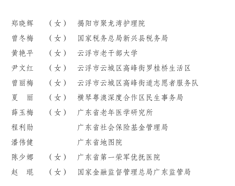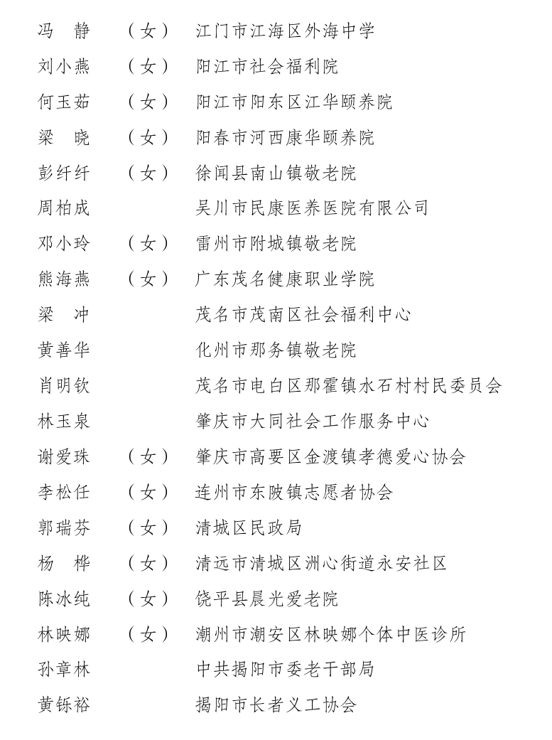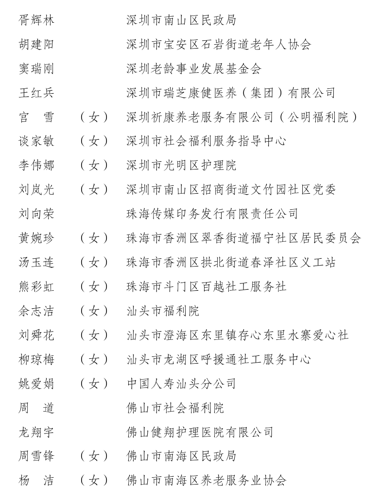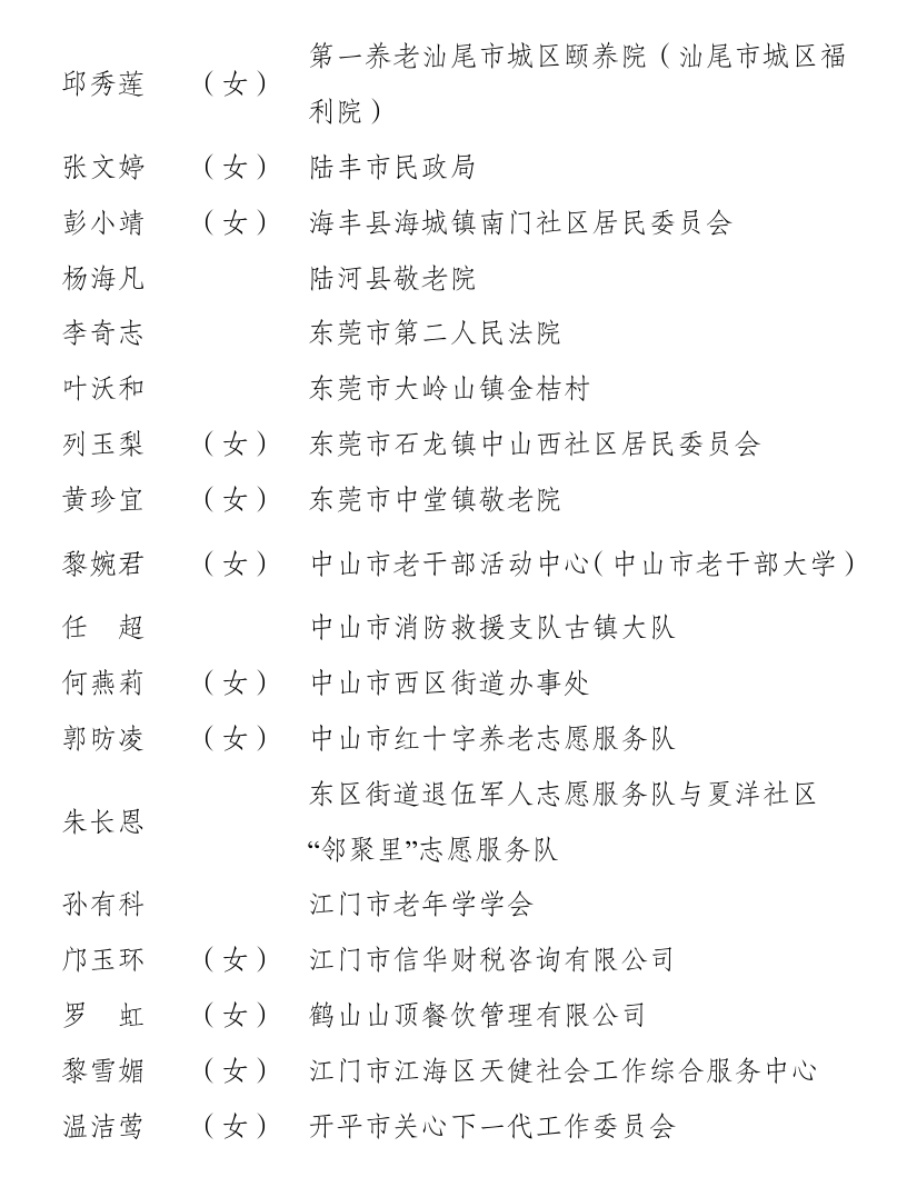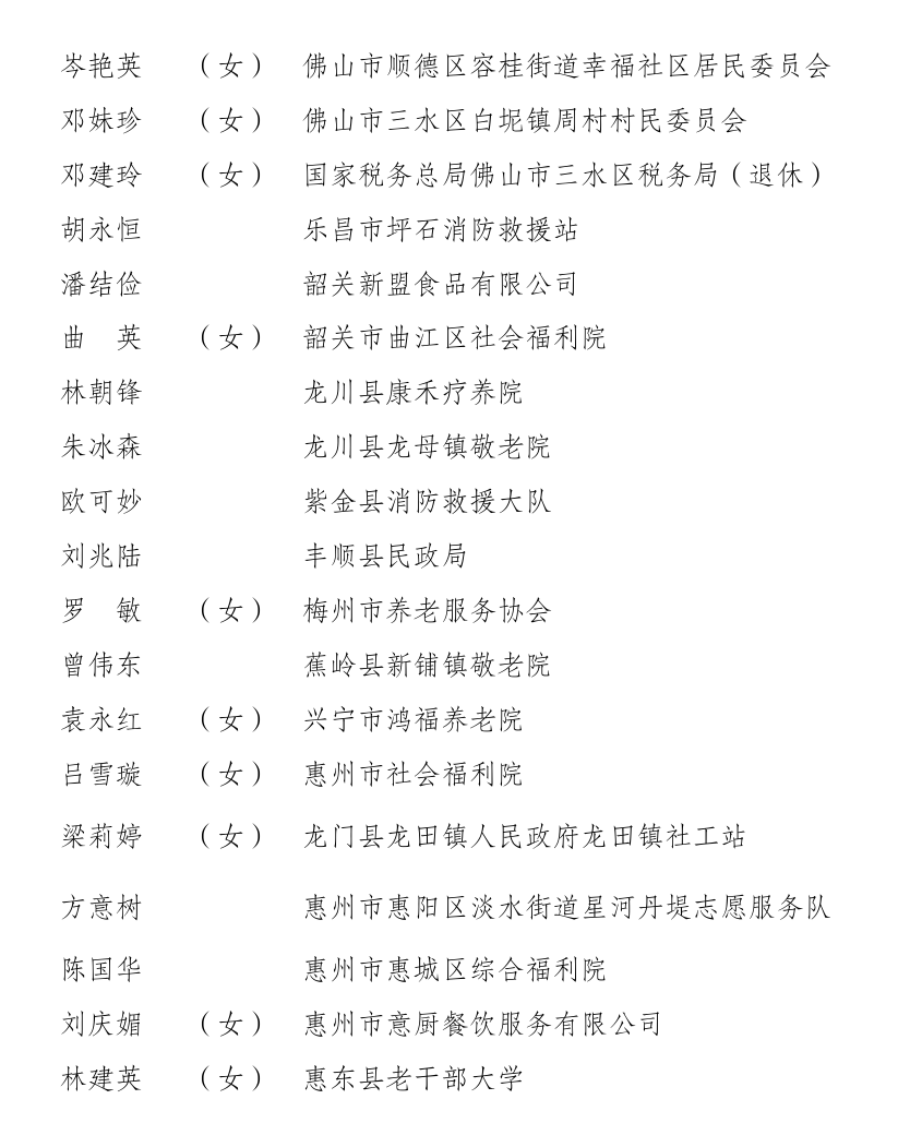 广东拟评为宇宙“敬老爱老助老尺度东说念主物”名单